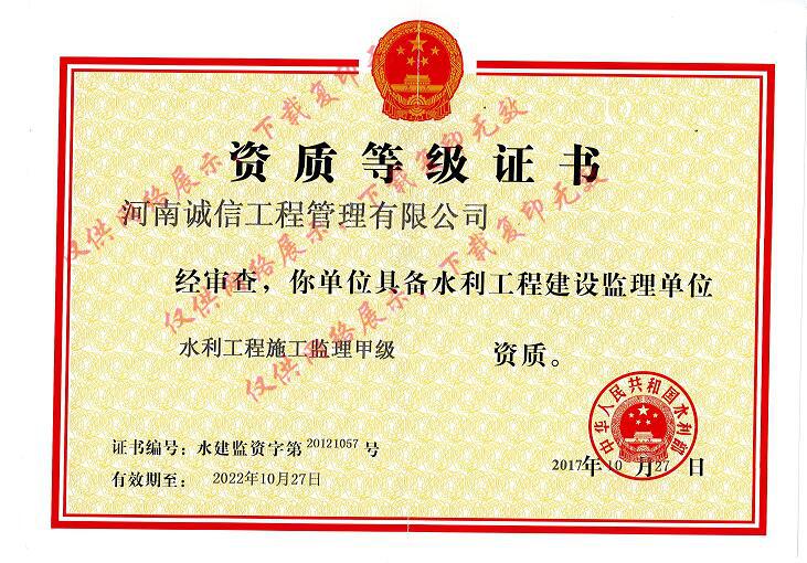 水利工程施工監(jiān)理甲級